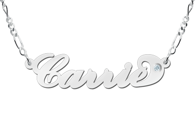 Personalize this classic “Carrie” style name pendant with the name of your choice! With this model, the format of a typical 6-letter name is approx. 11 mm high x 40 mm wide. Stated size is indicative only! The name necklace is supplied with a solid figaro chain 42 cm long.